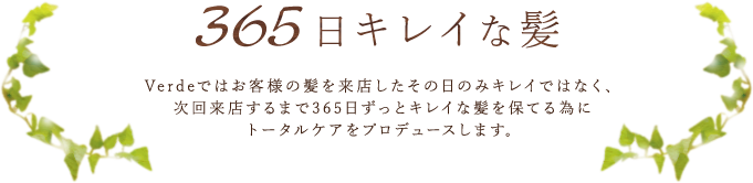 Verdeで取り扱いしている商品は、コンセプトの「365日キレイな髪を」に欠かす事のできない物ばかりです。シャンプーやトリートメントはお客様一人ひとりに合わせた最適な物をセレクトさせて頂いております。